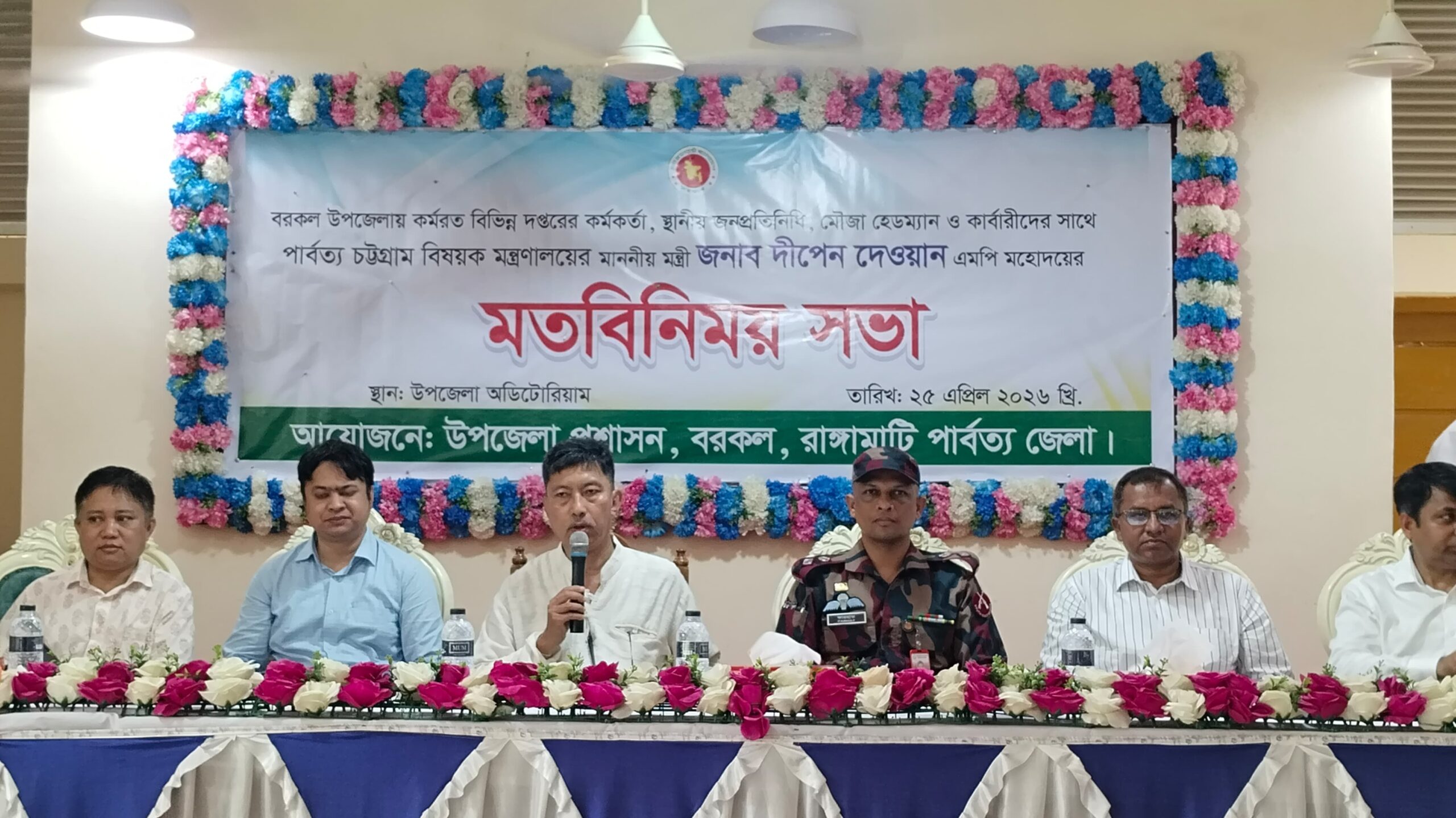প্রধান অতিথির বক্তব্যে পার্বত্য মন্ত্রী দীপেন দেওয়ান বলেন, বর্তমান সরকার পার্বত্য চট্টগ্রামসহ সারাদেশের সকল মানুষের জীবনমান উন্নয়নে কাজ করছে। তিনি বরকল উপজেলার সমস্যাগুলো অগ্রাধিকার ভিত্তিতে পর্যায়ক্রমে সমাধানের আশ্বাস দেন।