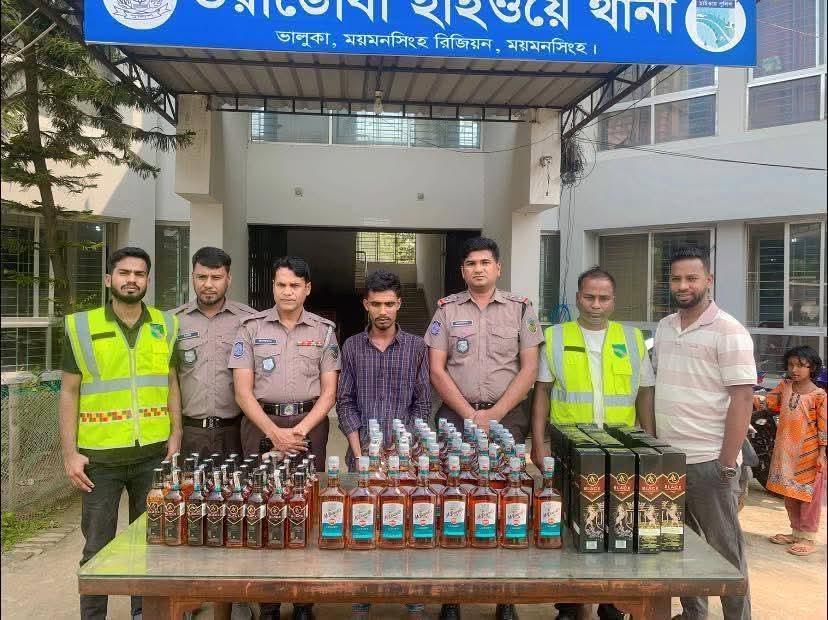 ভালুকায় হাইওয়ে পুলিশের অভিযান: প্রাইভেটকার ভর্তি ভারতীয় মদসহ আটক ১