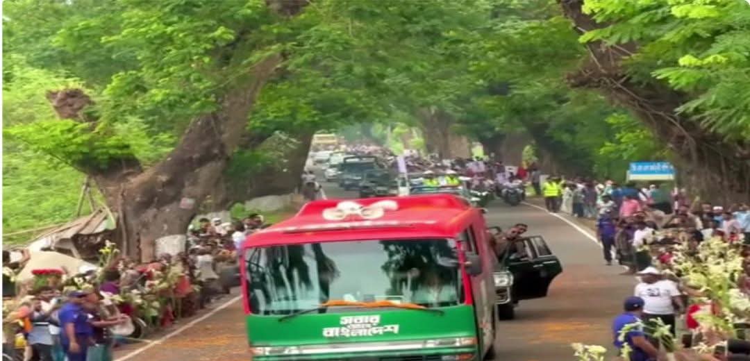 এ সময় তারেক রহমান সড়কে না নামলেও দুহাত নাড়িয়ে চাষিদের অভ্যর্থনা গ্রহণ করে অভিবাদন জানান।